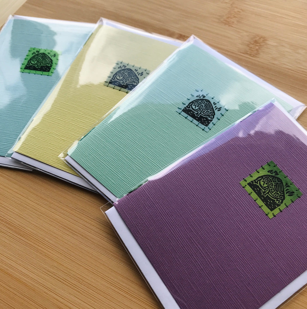 Grumpy Turtle - Original Linocut Art Card (Individual)