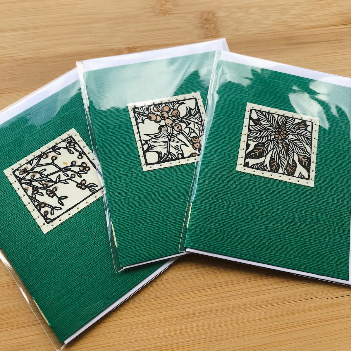 This is pack of 3 original art cards: poinsettia, mistletoe, and holly.